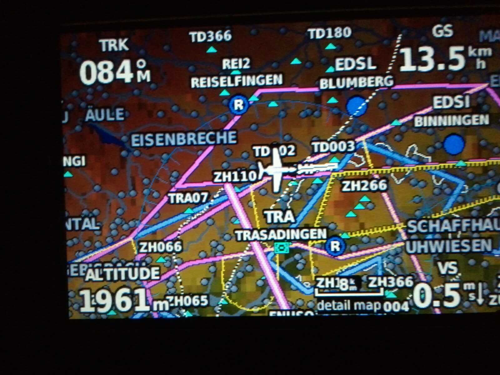 1760 meter über meer, 7km/h in richtung 030°. zirka 10 km nördlich von zurzach. nach anfänglicher schlaufe richtung südwesten gehts also doch noch nach deutschland.