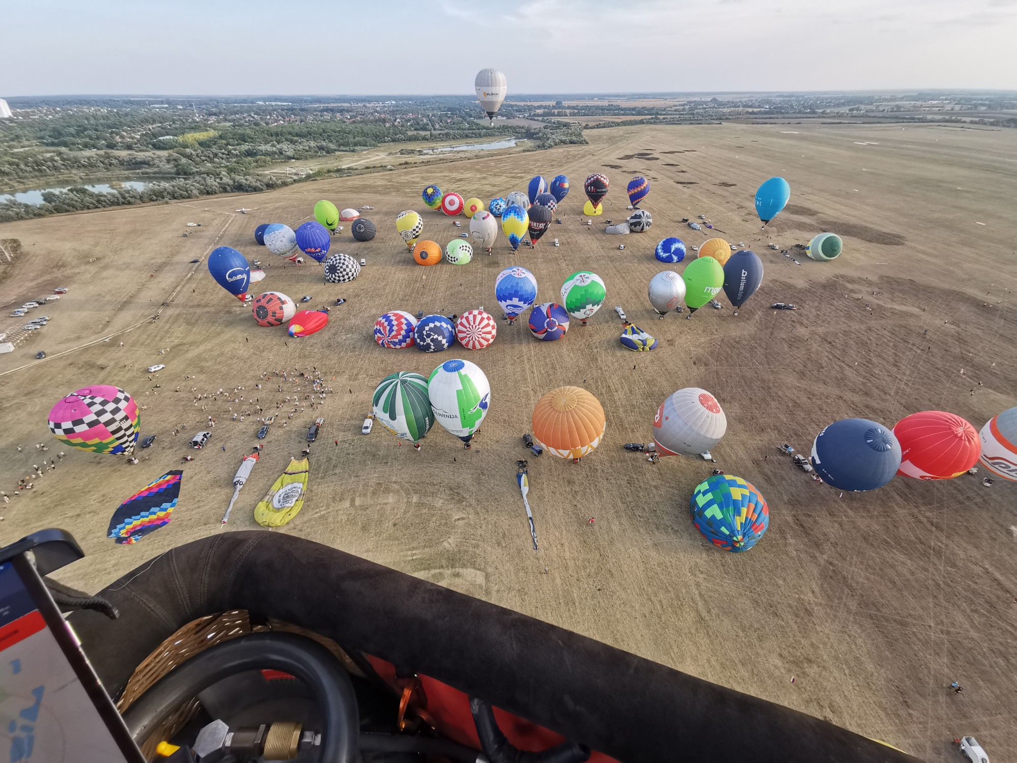 Trotz allem wurden vier Aufgaben gestellt, mit der Möglichkeit diese vor 0620 Uhr abzusagen. Auf dem Weg zum potenziellen Startplatz begann es deutlich zu regnen, hörte aber schnell wieder auf. Wir liessen Heliumballone steigen und befanden das Feld für gut. Es hatte genügend Platz um die Ballone auch bei viel Wind aufzurüsten. Mein PDG war eingezeichnet. Das FON vorbereitet. Dazwischen lagen noch das FIN und zwei HWZ mitten in der Stadt Szeged. Die Crew hatte gerade eine gute Einfahrt ins Feld eruiert als das Whatsapp kam: „Competition flight cancelled.“