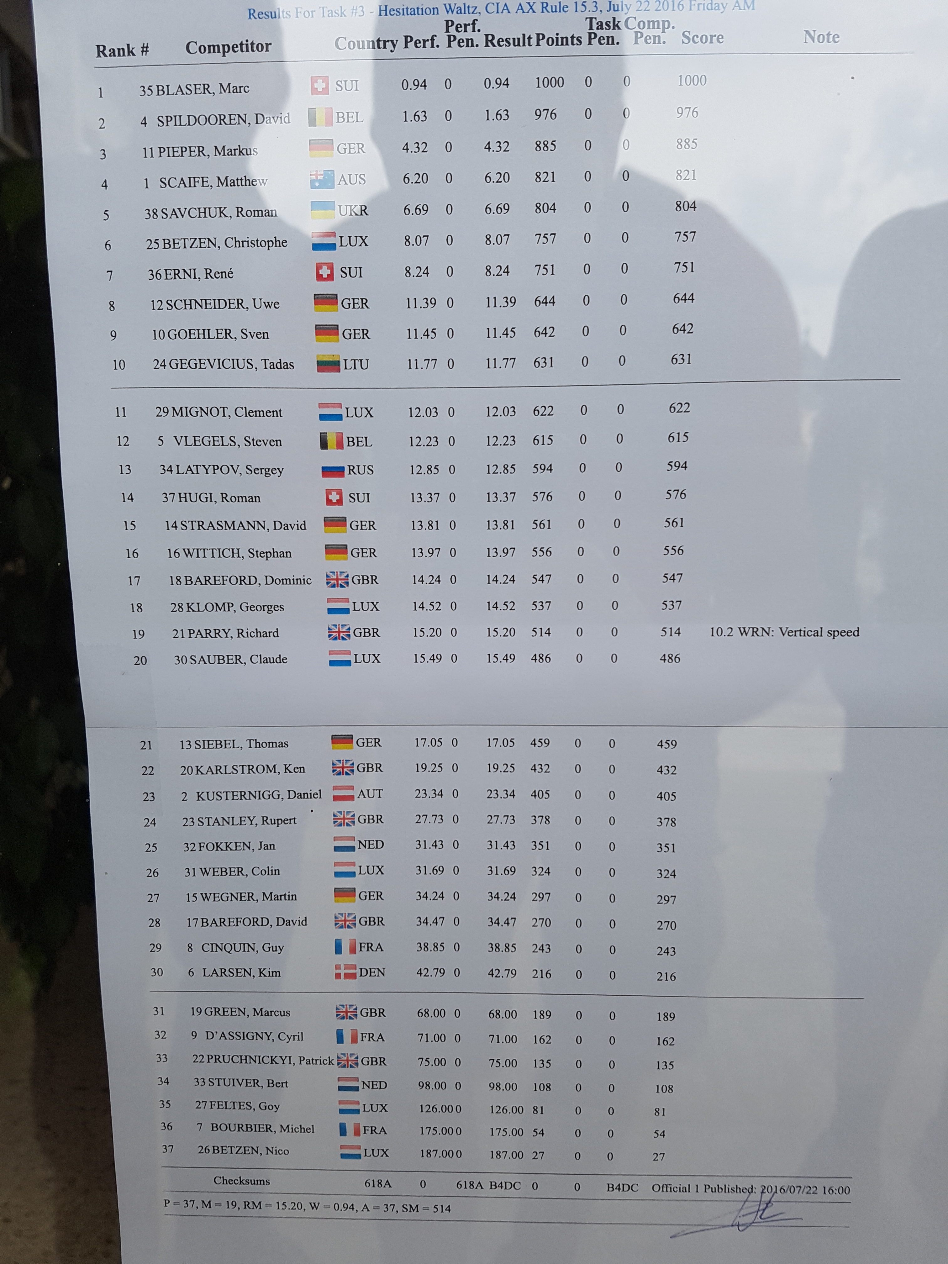 Aus unerfindlichen Gründen sind keine Resultate online, hängen aber aus. Deshalb hier die Fotos. Das FIN zieht unseren Schnitt ziemlich runter. Ansonsten können wir soweit zufrieden sein.