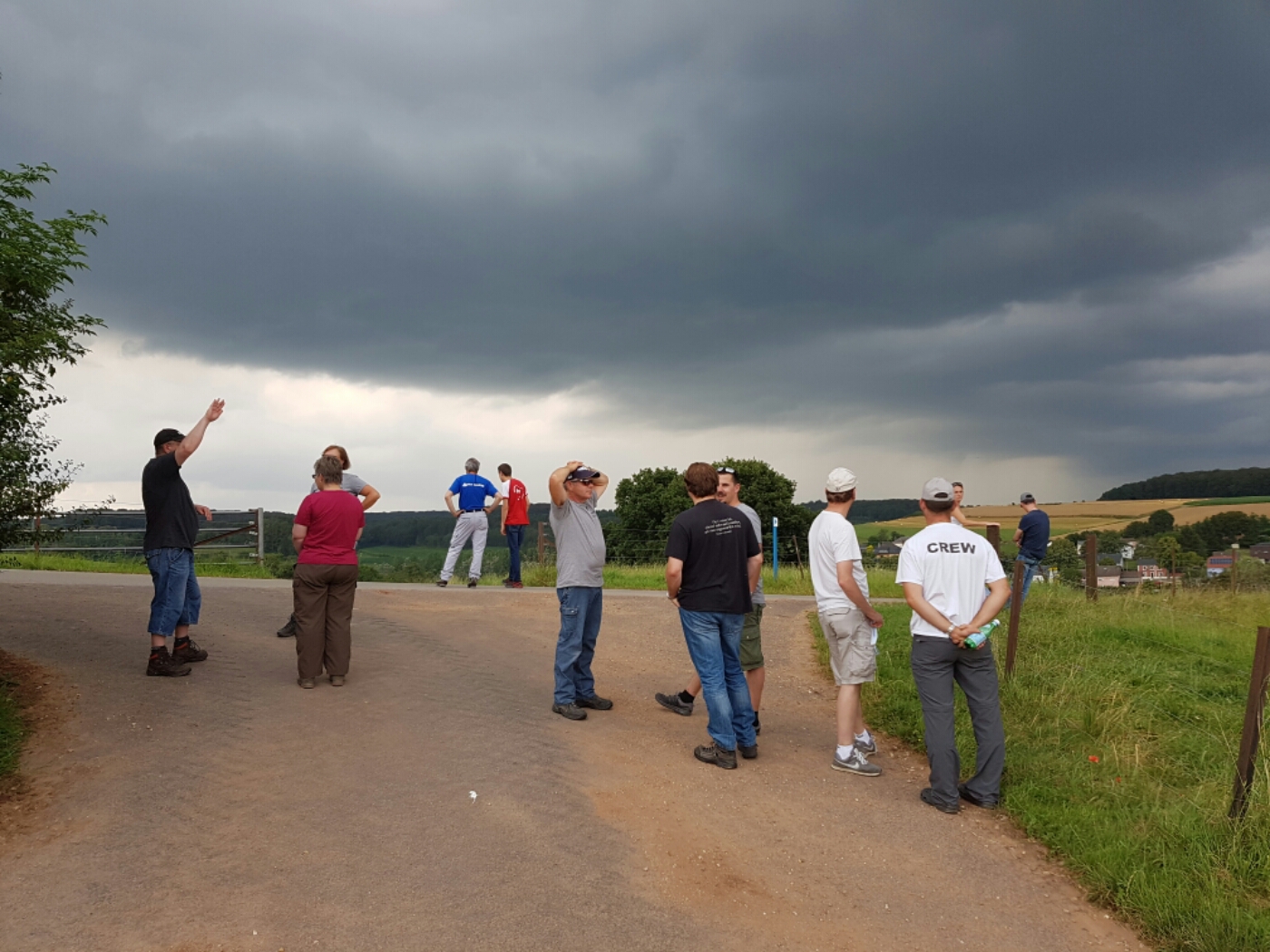 Die vom Meteorologen vorausgesagte Stabilisierung bleibt momentan aus. Es sind drei Aufgaben gestellt und wir warten westlich des FIN Zieles auf die Startperiode. Rundherum toben unwetterartige Gewitter und beim schreiben des Textes windet es mir beinahe das Handy aus der Hand. In dieser Sekunde wird per SMS ein Task gestrichen. Somit wären noch ein FIN und ein PDG zu fahren. Selbst wenn die Fahrt stattfinden sollte, würden wohl viele Piloten nicht starten.