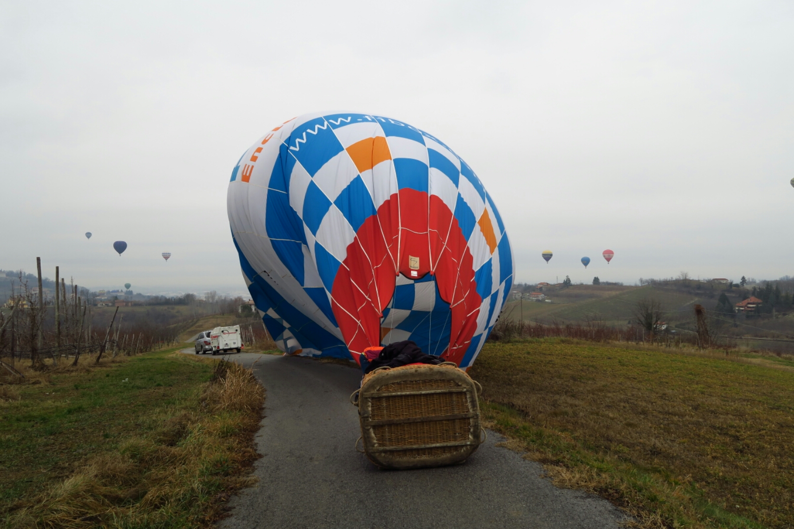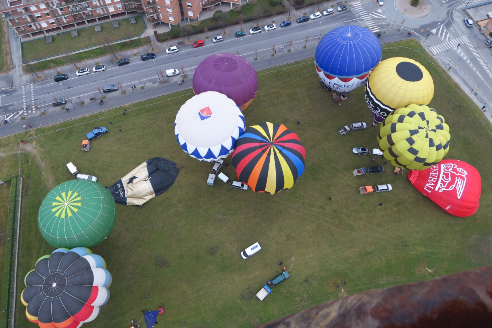 Mit Hochnebel aber sonst guten Bedingungen ging es heute Morgen los. Alle Ballone starteten wie gewohnt vom Parco Europa. Es galt ein Ziel einige Kilometer östlich des Startplatzes anzufahren. Von Anfang an versuchte ich nach rechts zu halten, was nicht so richtig gelingen wollte. So konnten wir den Marker leider nicht platzieren. Nur wenige Piloten erreichten das Ziel und Loggerwertung gibt es hier keine. Christian und Helen, welche heute das Verfolgerteam bildeten, waren bei der Landung im hügeligen Gelände vor Ort. Jetzt warten wir auf den Tanklastwagen, der vor bald einer Stunde angekündigt war. Bella Italia 🙂