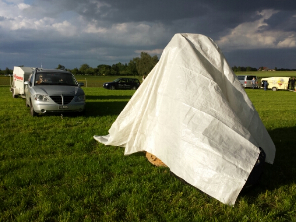 Die Fiesta-Ballone sind gestartet. Mittlerweile hat uns eine Schauerzelle erreicht. Ich plane weiter an der Taktik, vielleicht vergebens. Wir werden sehen…